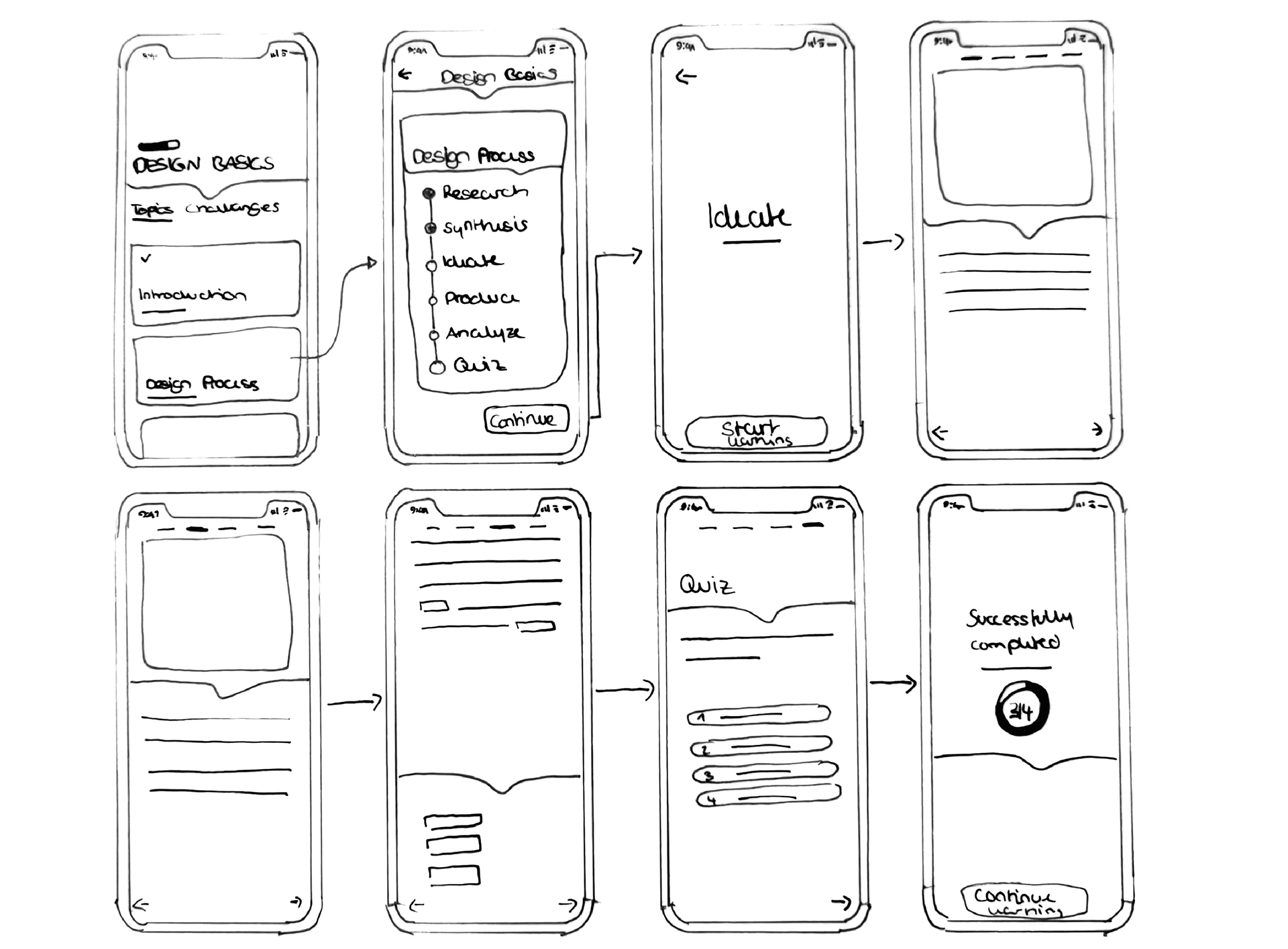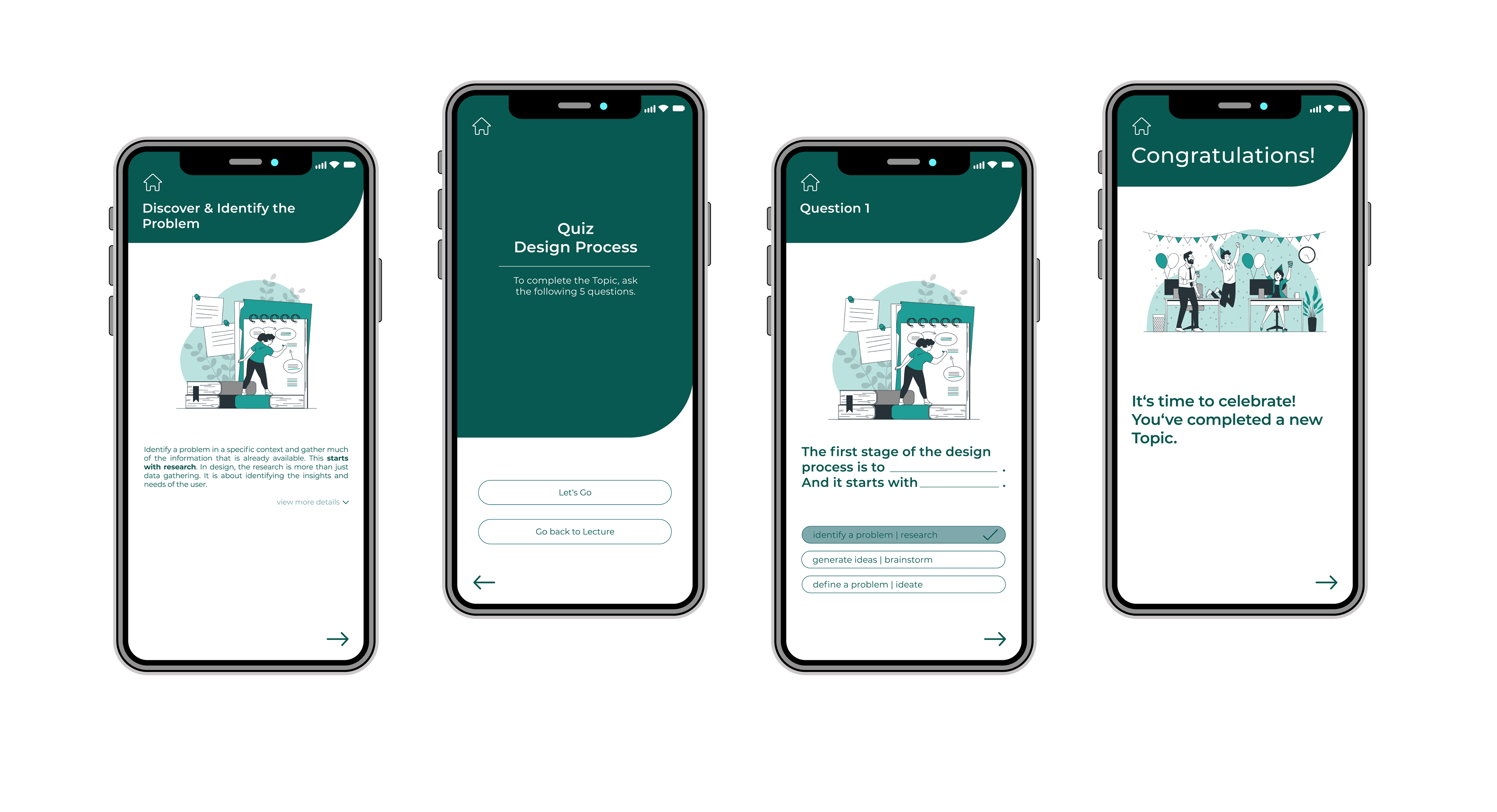 All the research led to the following concept for a design solution to support communication and understanding in interdisciplinary teams and simplify their workflow. A playful tool for a better understanding in other professional areas should be created. The understanding and communication can be strengthened and new skills are learned to enrich the work process. A learning platform to bring different ways of knowledge and thinking together. It could be an extension of a work management and organization tool or a learning App. It’s a tool to get an overview of different areas and create an individual learning path. For interdisciplinary teams, people get to know the others‘ way of working and gain essential knowledge. It also helps to create more mutual acceptance and recognition for the other parties besides clearing up misunderstandings.