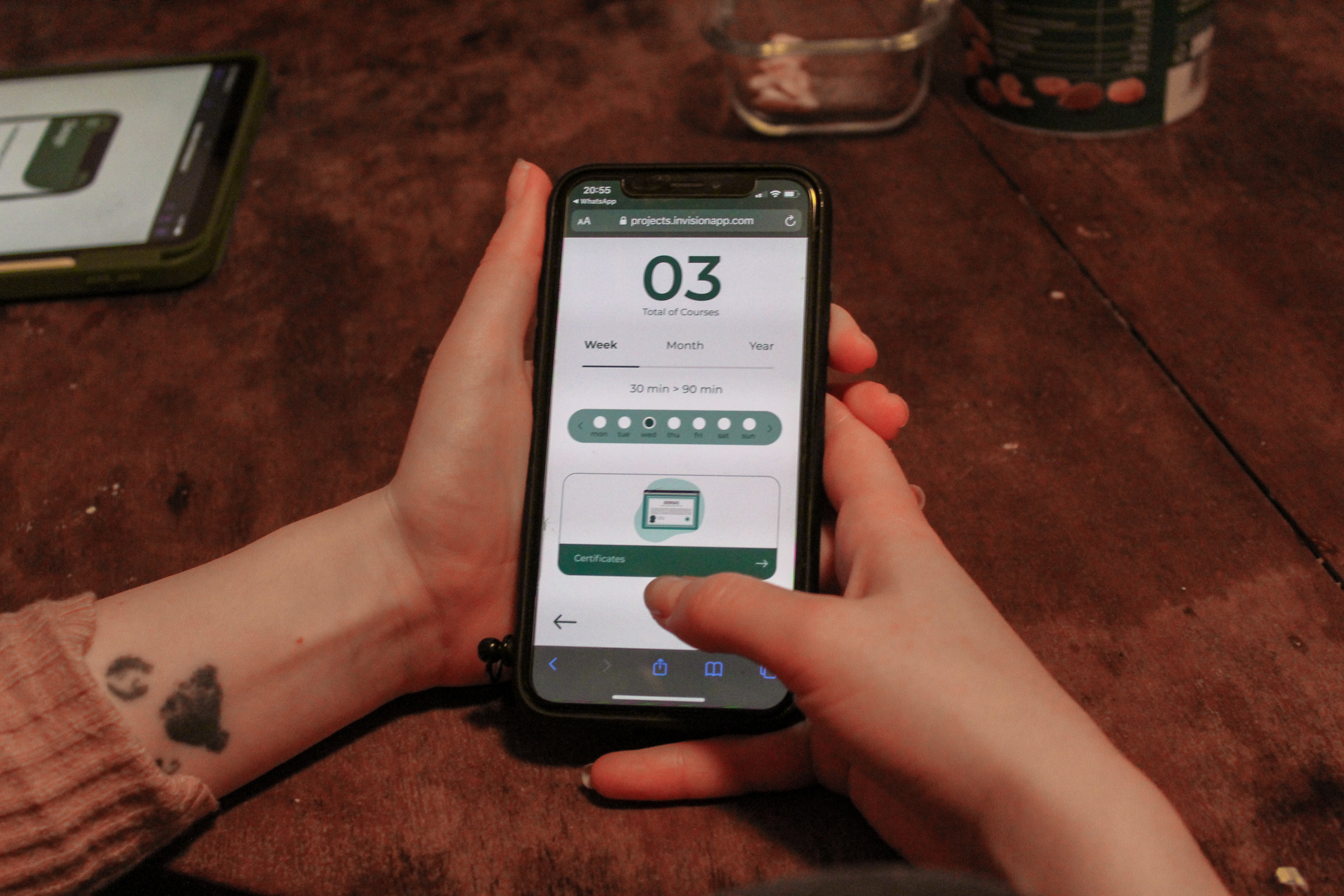 The final result is a clickable app prototype. This prototype shows how the app will look and function when developed. It is kept clean and simple to not give too much input and to be able to focus on the learning process. With the QR code you can go directly to the prototype to test it.