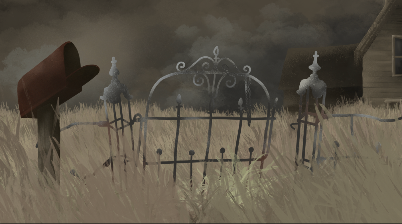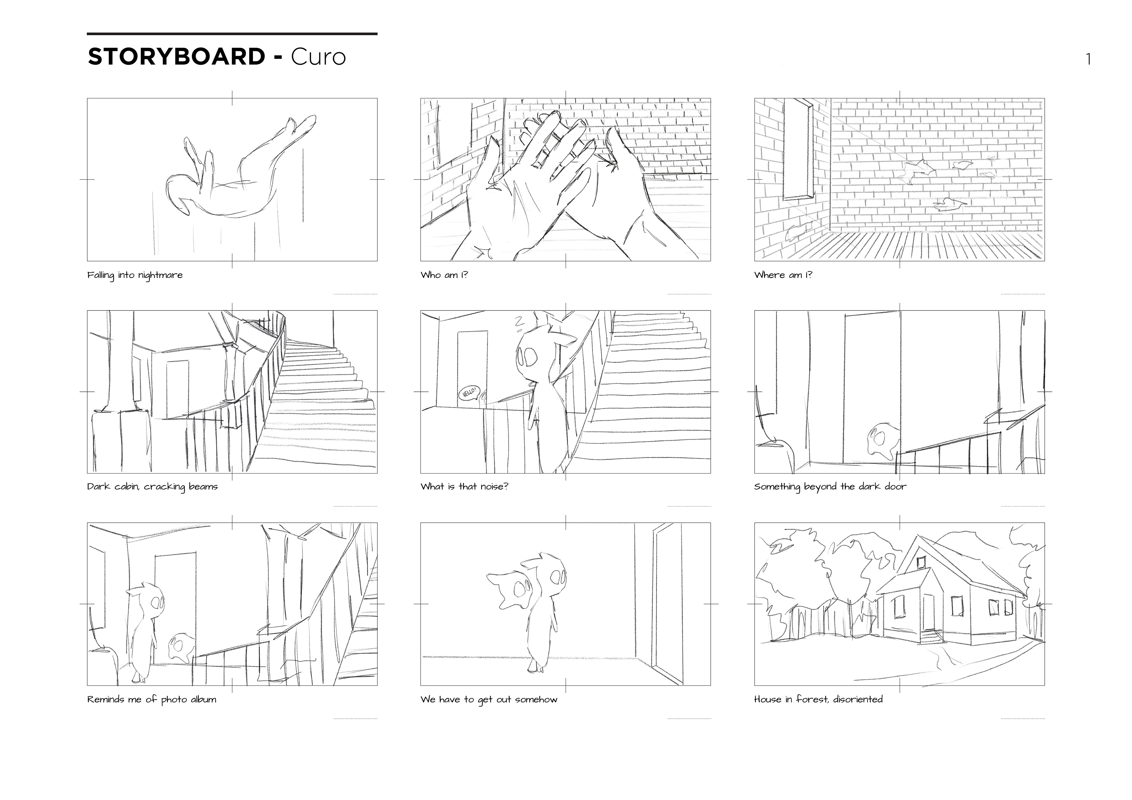 The colour scheme should reflect the mood of the main character. It starts in the dark cabin, you feel scared, confused and depressed. A small glimmer of hope appears when Jesse appears and together they look for a way out.