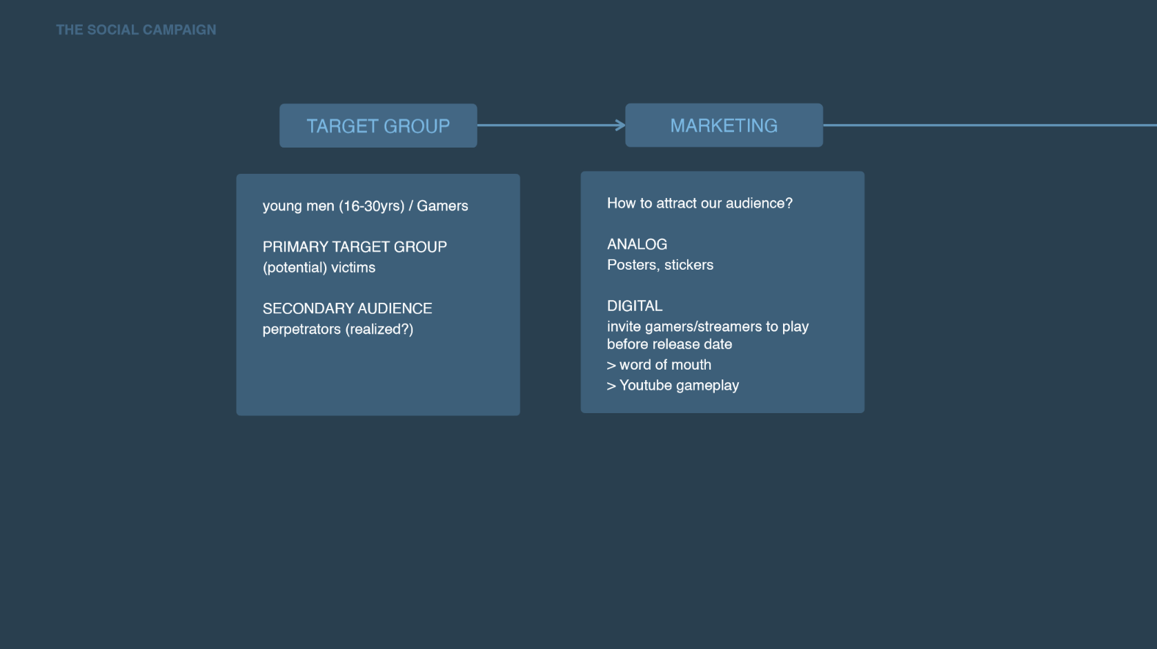 We also want to use social media like Instagram. However, Twitch is very important for us and we want to invite streamers to play the game and talk about it. That way, the theme or the secret message behind the game will become better known.