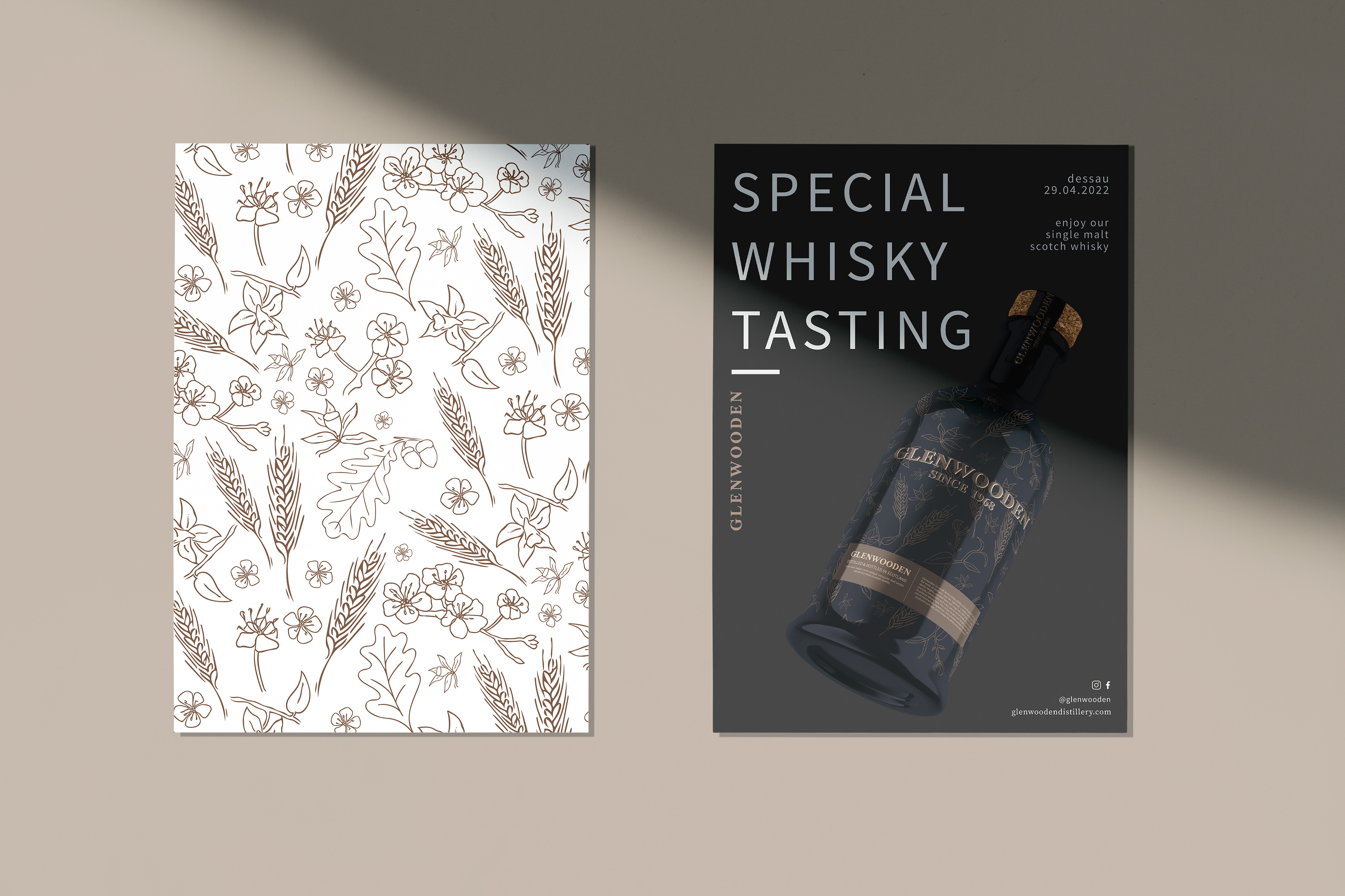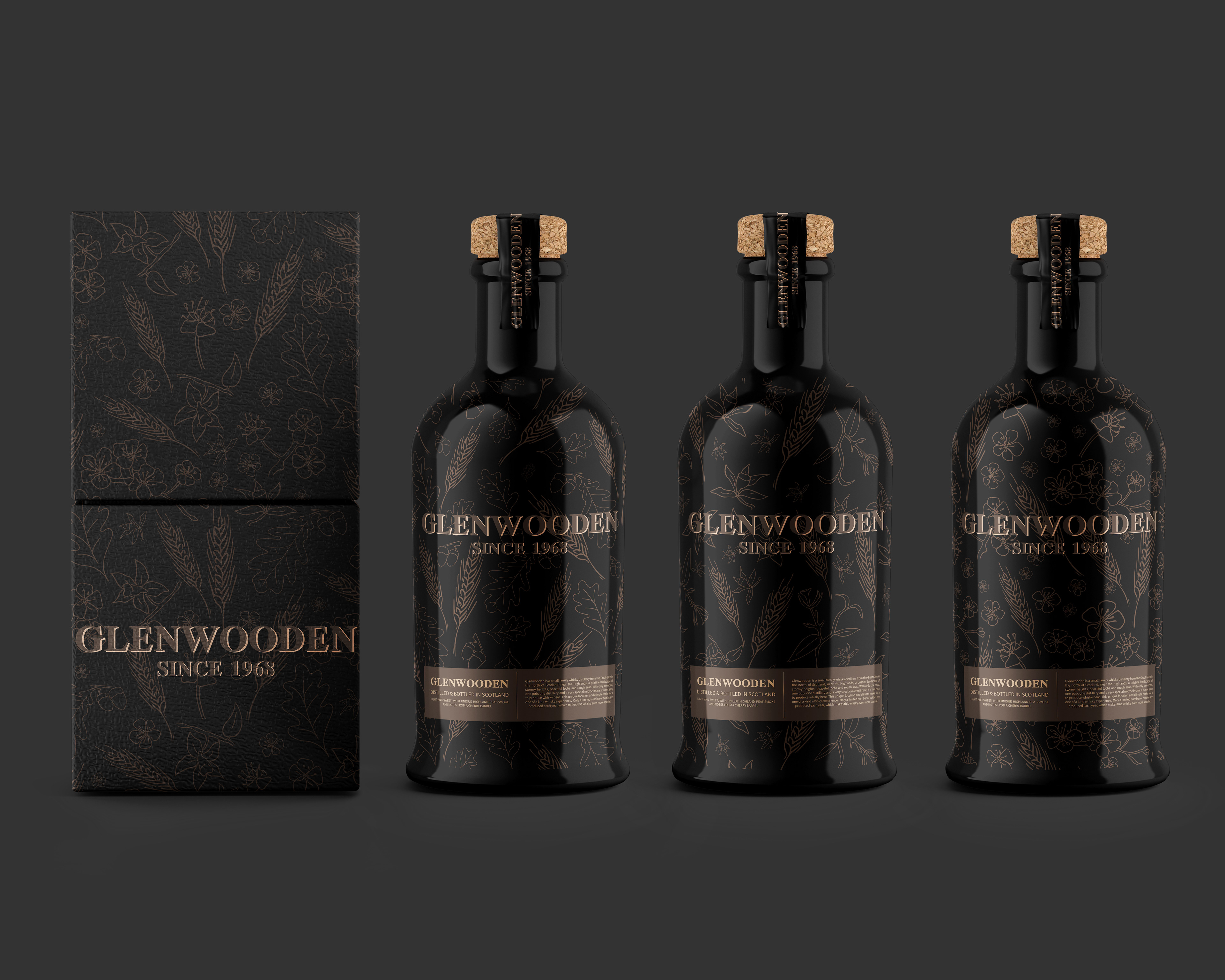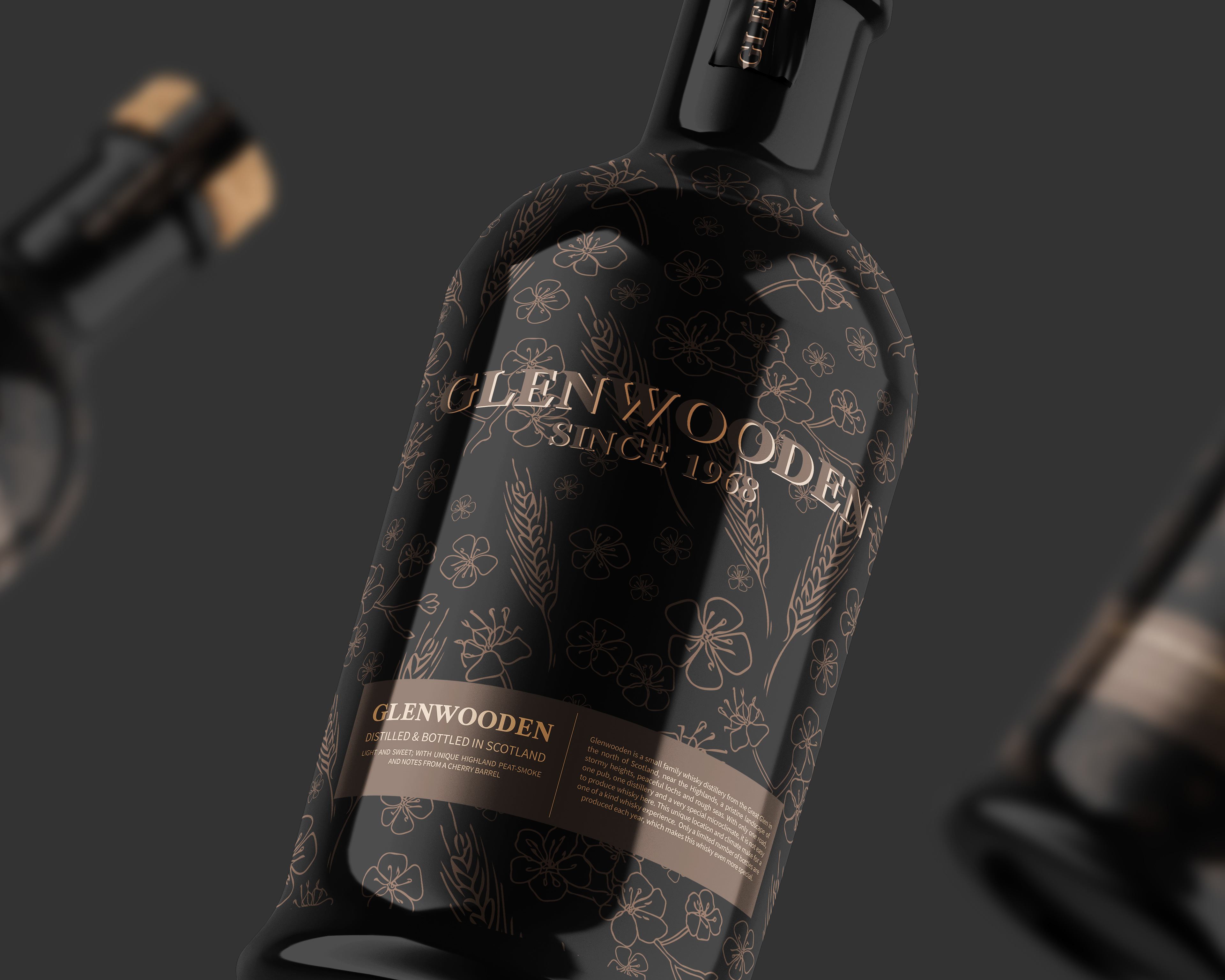 The final product is different packaging for the fictitious whisky brand Glenwooden.