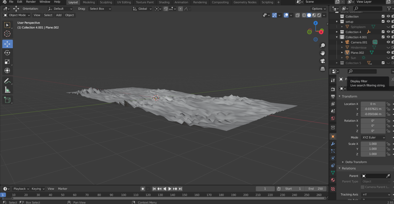 The floor is created as an uneven surface, using subdivision, select random and random editing to move some areas up and then smooth them.